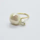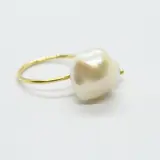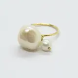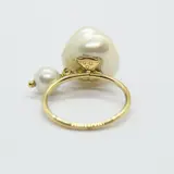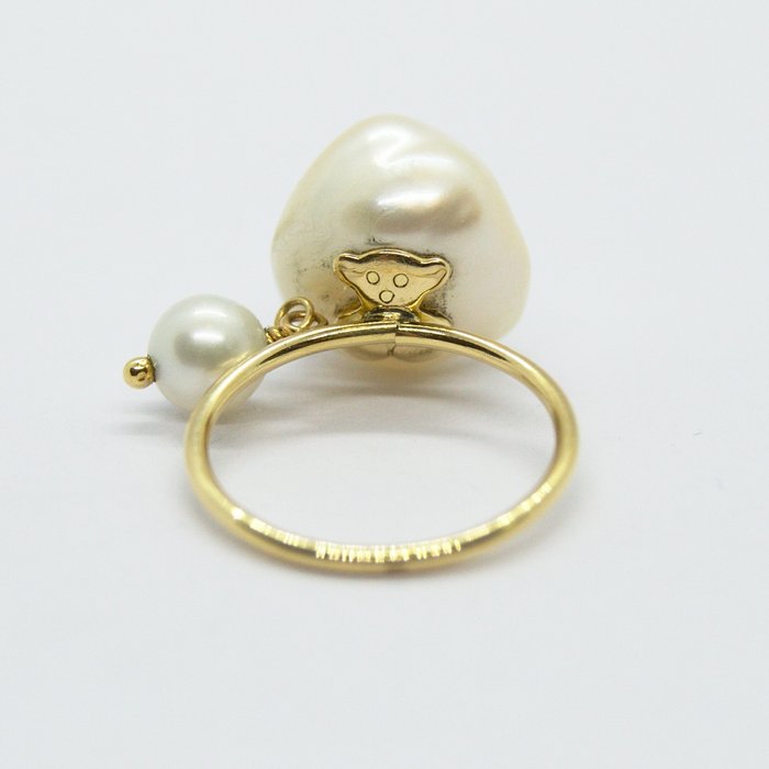 Ring gemaakt door Tous in eerste gehalte geelgoud (18 kt of 750/1000) met een centrale barokparel en een ronde parel.