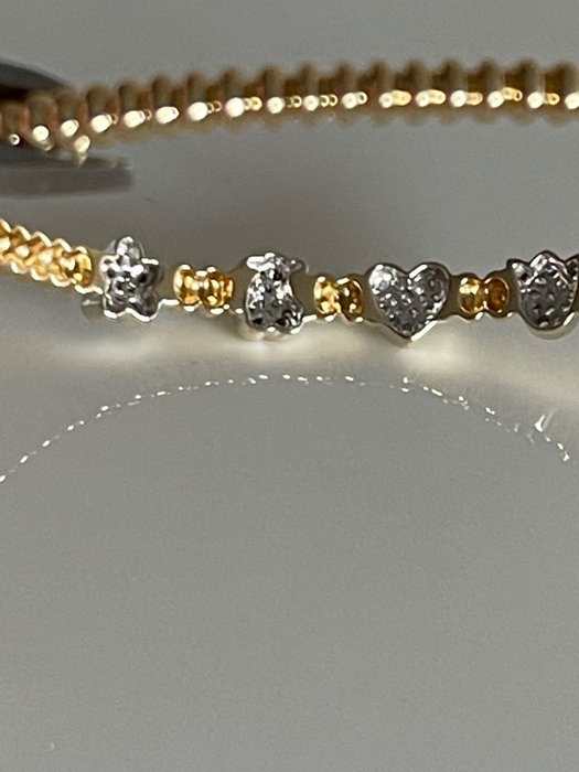 Spectaculaire armband van het merk Tous, gemaakt van 18 kt geelgoud en witgoud, versierd met in totaal 0,20 ct briljant geslepen diamanten.