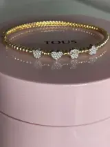 De armband is versierd met 4 motieven, emblemen van het merk Tous: de beer, het hart, de bloem en de tulp, allemaal versierd met diamanten. De sluiting van de armband gaat met 2 veiligheidsstukken om hem te beveiligen als hij eenmaal gesloten is.