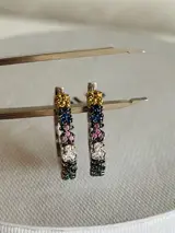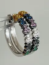 Precious Creoolse oorbellen van het merk Tous, gemaakt in 18 kt witgoud en briljant geslepen fancy diamanten in 6 kleuren: geel, blauw, mauve, wit, zwart en groen, met een totaal van 0,30 karaat.