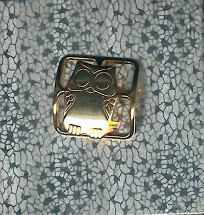 Splinternieuwe, metalen design sjaalclip in de vorm van een uiltje. In verguld metaal, gepresenteerd in een doosje, ideaal als geschenkje.In perfecte staat, zie foto's recto/verso a.u.b.Doe een goed, aannemelijk bod.Versturen met bpost >.