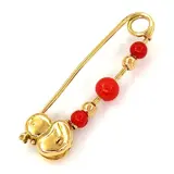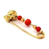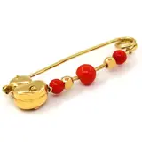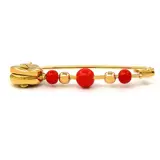 Broche in 18K geelgoud met 2 mediterrane rode koralen van 3,60 en 1 van 4,86 mm