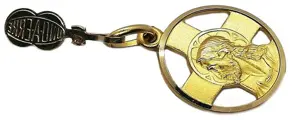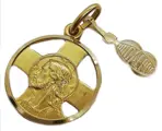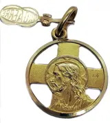 Hangerdetail van het gezicht van Jezus, in geel goud, 750/1000, 18 karaat.