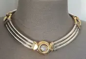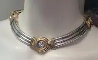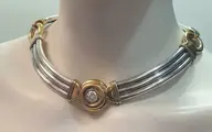 Oud verguld 925 zilveren collier met centrale zirkoon Afmetingen: lengte 41, breedte 1,5 cm Merk UNOAERRE, een merk dat niet onopgemerkt kan blijven.