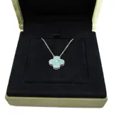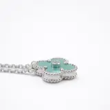 Witgouden Alhambra hanger met een pastel lichtgroene porseleinen steen