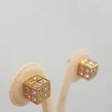 Exclusief ontworpen kubusoorbellen van Vasari Jewellery, in 18 kt geelgoud, met 40 briljant geslepen diamanten van in totaal ongeveer 2 ct, met een geschatte G/H-kleur en een geschatte V-zuiverheid. Duw de sluiting terug.