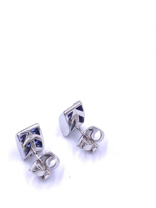 Oorknopjes, VASARI-ontwerp in 18K witgoud met blauwe saffieren, gewicht ca. 5,49 ct. Druk sluiting.
