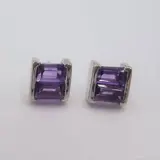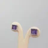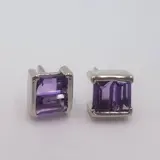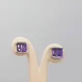 18 karaat witgouden oorbel met 4 baguette geslepen amethisten. Duw de sluiting terug.