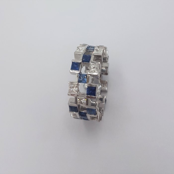 Exclusieve designring van Vasari Jewelry, in 18K witgoud, met 12 princess geslepen diamanten met een totaalgewicht van ongeveer 1,20 ct, met een geschatte kleur G/H en een geschatte zuiverheid VS.