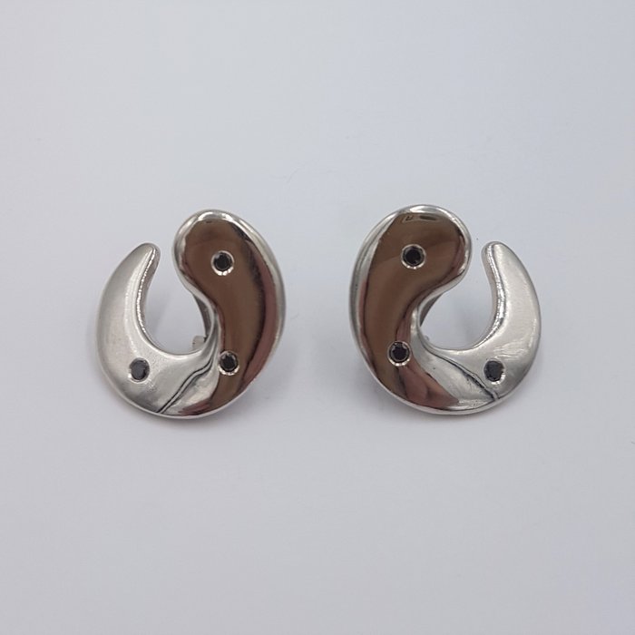 Sterling zilveren oorbellen, met een exclusief Vasari Jewellery design, met zwarte diamanten. Klink terug sluiting.