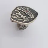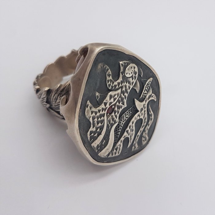 Ring, Vasari Jewelry design, met dubbele hoepel in sterling zilver met chalcedoon cabochon.