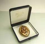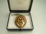 De grote prachtige Victoriaanse hanger/broche is gemaakt van 585 = 14 karaat geelgoud en is niet gekeurd. Daarom heb ik het professioneel laten nakijken door een meester goudsmid. Hij bevestigt dat de hanger is gemaakt van massief 14k geel goud.