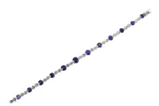 A refined expression of Art Deco elegance but also styled simplicity, this French platinum bracelet from the 1920s weaves a seamless rhythm of diamonds and sapphires into a design of timeless sophistication. Twelve luminous sapphires, displaying a particularly vivid and velvety cornflower blue hue, are exceptionally rare in their untreated state. Their natural brilliance is heightened by the sparkle of 24 old mine-cut diamonds, totalling approximately 3.92 carats, lending a striking contrast. The fluid articulation of this piece, combined with its geometric grace, captures the era’s spirit of modernity and luxury. A masterpiece of refined craftsmanship, marked with the French dog’s head for platinum.