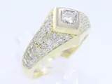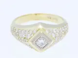 vintage ring met echte witte solitaire briljant en echte witte diamanten / 585 goud 14 karaat. Duitsland rond 1970.
