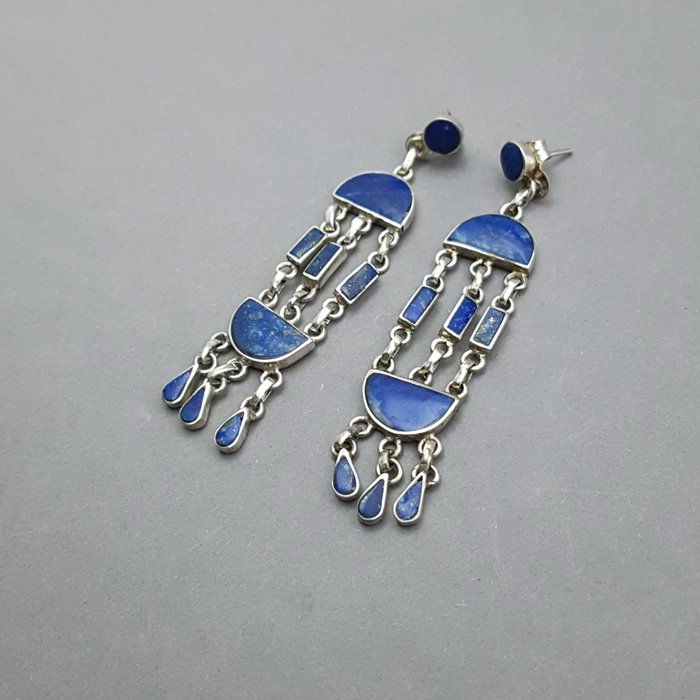 Fraaie zilveren Vintage oorbellen met Lapis Lazuli.