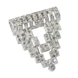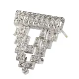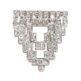 This stunning Art Deco diamond clip brooch, circa 1920, captivates with its bold geometric design and timeless elegance. Crafted in platinum with an 14K gold pin, the piece features 84 single brilliant-cut diamonds, totalling approximately 1.83 carats. The intricate composition of stepped shapes and sharp angles reflects the dynamic energy of the Roaring Twenties, embodying both sophistication and modernity. More than just a striking accent that celebrates the innovation and glamour of the Art Deco era, this brooch is the perfect accessory to elevate your contemporary outfit with a touch of vintage refinement.