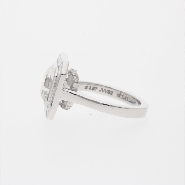 Centrale stenen: 3,97 ct assher geslepen diamant