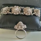 Een klassieke zilveren set bestaande uit een armband en een ring met Zeeuwse knoop.