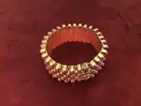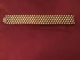 18cm met sluiting lengte br 23mm dikte 4,7 mm geen schade of restauratie postnl kosten koper goed verstuurd met dubbel bubbel plastic extra informatie zeer mooie armband dubbel slotje de armband is van zilver 925 hij weegt 74 gram en een uit straling van goud door dat hij verguld is hij is dubbel vergrendeld