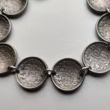 1x Zilveren munt armband van bol geslagen 10 centjes Wilhelmina uit 1937-1941. (3x 1937 / 1x 1938 / 2x 1939 / 4x 1941)