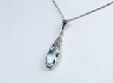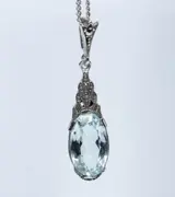 Aquamarijn: ca. 14x8 mm, oud ovaal geslepen. getest.
