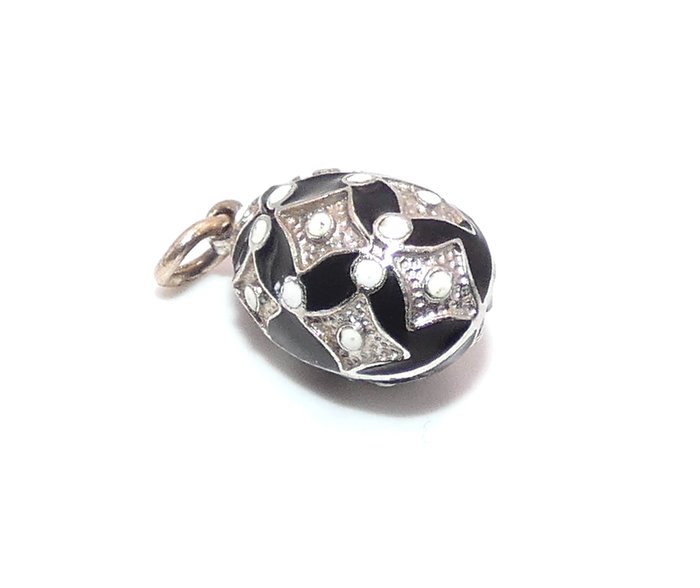 Vintage Sterling zilveren geëmailleerde Russische eierhanger, gemerkt met een buitenlands merkteken.