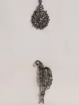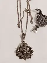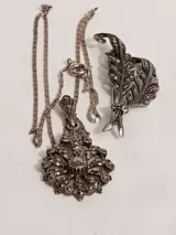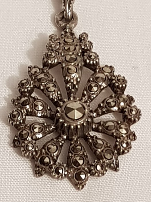 Zilveren collier waaraan een hanger volop bezet met gezet markasiet Toegevoegd een bijbehorende zilveren tak broche met gezette markasieten. - 835 Zilver - Set