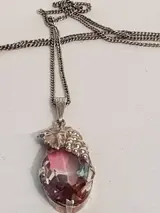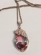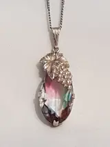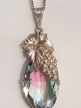 Zilveren Dames gourmet collier waaraan een zilveren hanger afgezet met decoratie van een blad met druiventros waaraan een langwerpige spinel van 2.5 x 1.5 cm met vele facet vlakken. - 835 Zilver - Collier met hanger