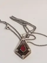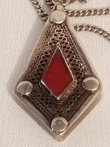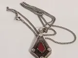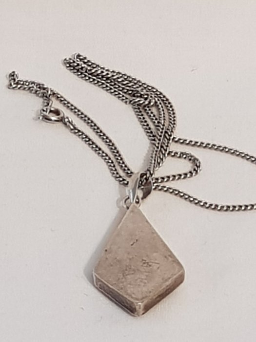 Zilveren gourmet collier waaraan een hanger in art-deco style in de vorm van een ruit waarin een carneool edelsteen. - 835 Zilver - Collier met hangerZilver getoetst,