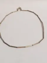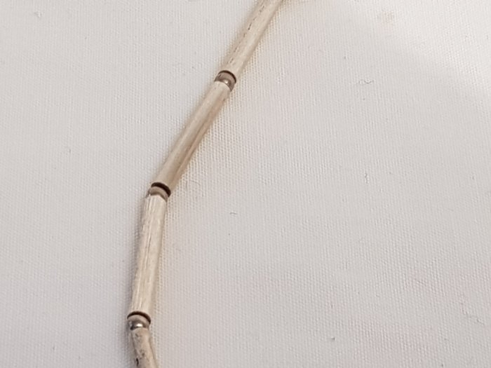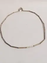 Glad zilveren design collier van strakke langwerpige zilveren schakels, lengte 42 cm.