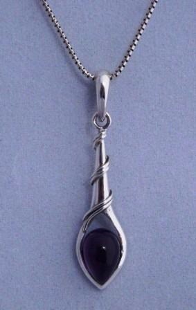 Deze fraaie zilveren hanger met amethist is circa 11 x 49mm groot. Indien gewenst kan er een bijpassend zilveren kettinkje van 45 of 50 cm. lengte meegeleverd worden.