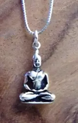 Deze fraaie hanger van 925 sterling zilver heeft een lengte van circa 2,5 cm. en geeft Boeddha in meditatiehouding weer.