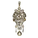 This Georgian brooch-pendant, ca. 1830, exudes a silent poetry in 18K gold, its 61 rose-cut diamonds shimmering atop foil—a technique from a time when jewellery spoke of status and skill. The black enamel whispers of enduring elegance, the craftsmanship a tribute to ancient enamelling arts. Its origin remains a mystery, adding to its allure, and its condition is very good—a testament to its cherished past. The piece resonates with the deep heritage of a bygone era, echoing a richness that transcends time.