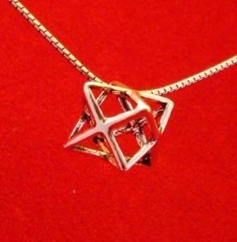 Het betaat uit een geometrische vorm van 2 piramides die in elkaar vallen, 1 met de punt omhoog en de ander met de punt naar beneden.