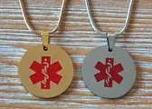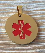 Deze sierlijke ronde hanger laat er geen twijfel over bestaan dat deze voor medische doeleinden is en een boodschap heeft aaan de achterzijde. De hanger kan aan de achterzijde voorzien worden van tekst naar keuze.