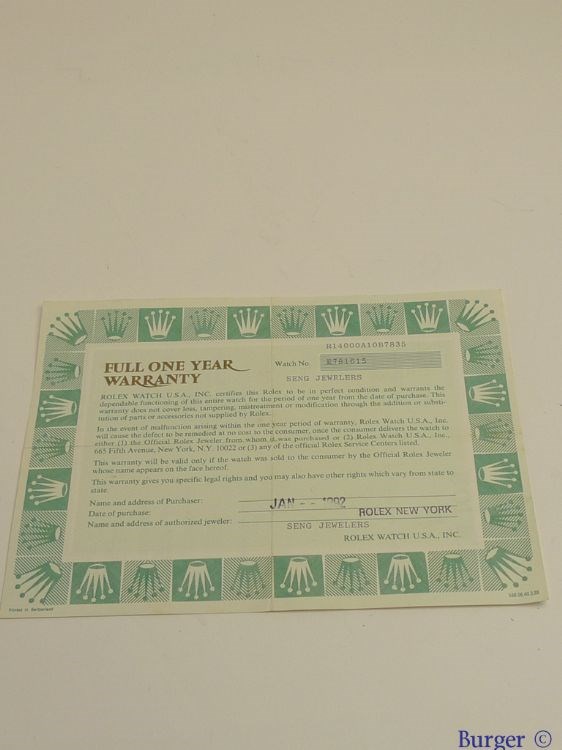 Rolex Warranty Certificate Ref: 14000