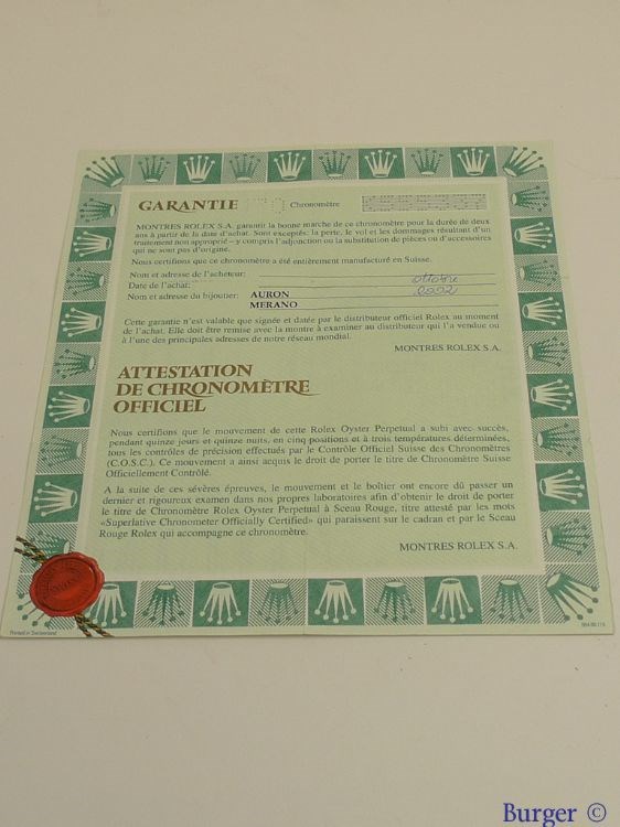 Rolex Warranty Certificate Ref: 80298