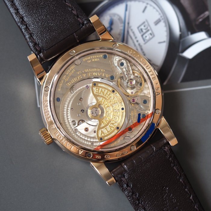 Beschrijving : Een nu stopgezette, door de fabriek bestickerde A. Lange & Sohne Saxonia jaarkalender in roségoud voor de veiling. Volledige onderhoudsbeurt uitgevoerd door Lange eind 2022.