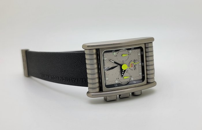 Het horloge wordt geleverd met de originele zwarte rubberen band, op de originele gesp.
