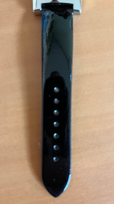 Een nieuwe en nooit gedragen pols horloge van Alfred Dunhill. Type 8022.Stalen horloge welke fijn gepolijst is en voorzien van een zwarte lak lederen band.Zelf de sticker zit er nog achterop.Recent voorzien van een nieuwe batterij. Lengte van het horloge is 20,cm. Breedte van de kast is 27mmLeeftijd niet bekend