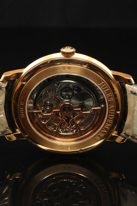 Audemars Piguet Jules Audemars extra dun, ref: 15180OR.OO.A002CR.01, horloge van 41 mm. 18K roze gouden kast. Zwarte wijzerplaat. Automatisch uurwerk. Zwarte alligator lederen band met 18K roségouden doorngesp.