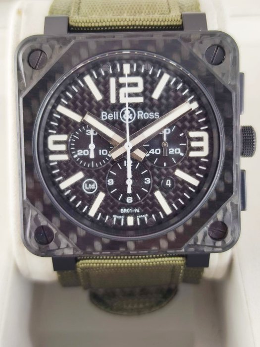 Bell & Ross Carbon FIBER automatische chronograaf LIMITED EDITION 182/500 Full-set BR 01-94
