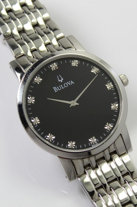 Bulova herenhorloge met zwarte wijzerplaat en diamant