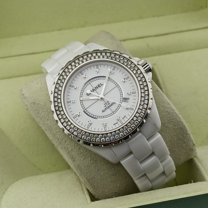 - Witte wijzerplaat bezet met diamanten
