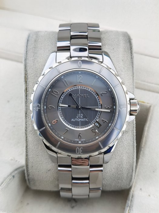 Grijze keramische lunette, titaniumkleurige keramische kast en armband