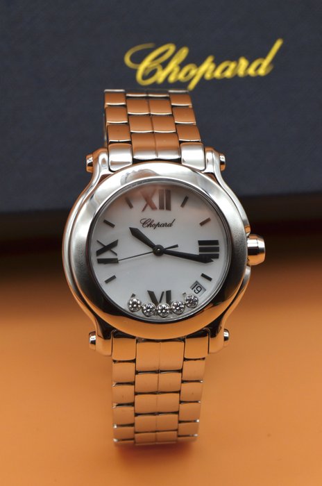 Chopard Happy Sport Diamonds dameshorloge met datumaanduiding.