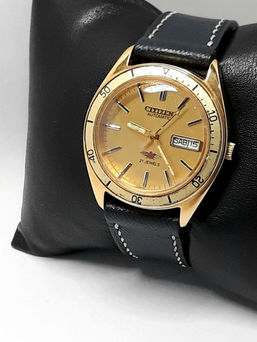Een geweldig automatisch vintage horloge van het bekende Japanse topmerk Citizen uit de jaren 70. De zeer mooie champagne wijzerplaat heeft een geweldig design. Prachtige vergulde kast en bezel. De wijzerplaat van het horloge glanst fel. Een mechanisme met een krachtige werking. In deze staat is dit horloge bijna niet te vinden. Ik raad het ten zeerste aan voor dagelijks gebruik, als verzamelobject of als een leuk cadeau.