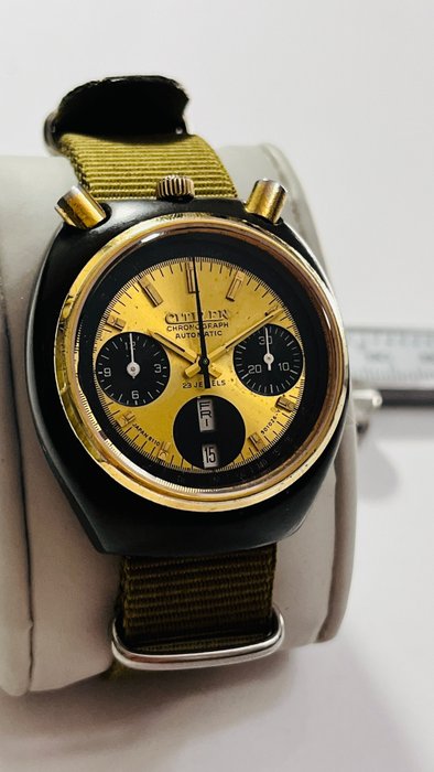 ***Citizen 12 uur 30 minuten, chronograaf en flashback. Bullhead panda vintage automatisch polshorloge.