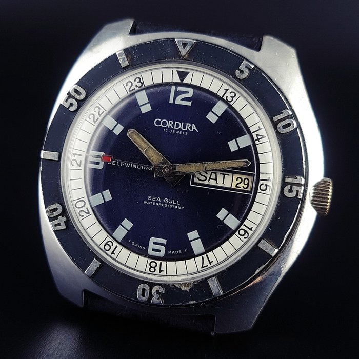 Vintage Automatic Diver, Sicura Dochteronderneming, Cordura heren automatisch horloge uit de jaren 70. Grote kast (42 mm). Heeft slechts kleine markeringen. Houdt goed de tijd.