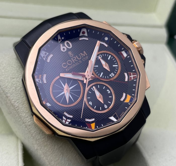 Corum Admirals Cup Regatta 44 chronograaf in 18k roségoud en gevulkaniseerd rubber.